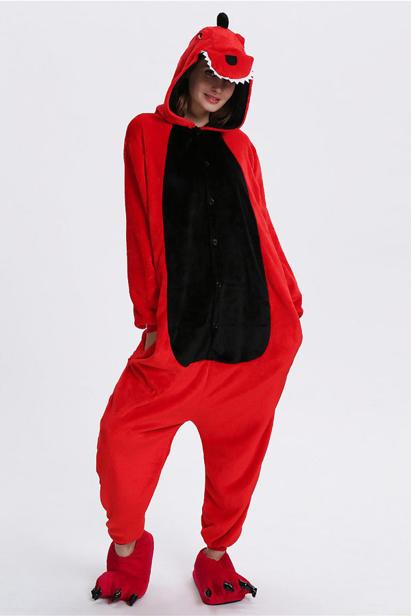 Пижама кигуруми Красный Дракон / Динозавр / Крокодил / Годзилла из мягкого и пушистого велсофта.