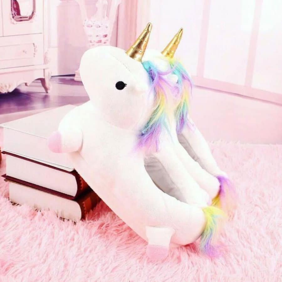 Домашние детские тапки единорог нежного белого цвета с закрытой пяткой никого не оставят равнодушным и будут радовать своего обладателя и окружающих каждый день.