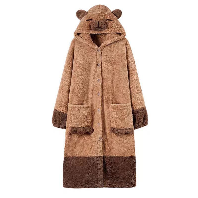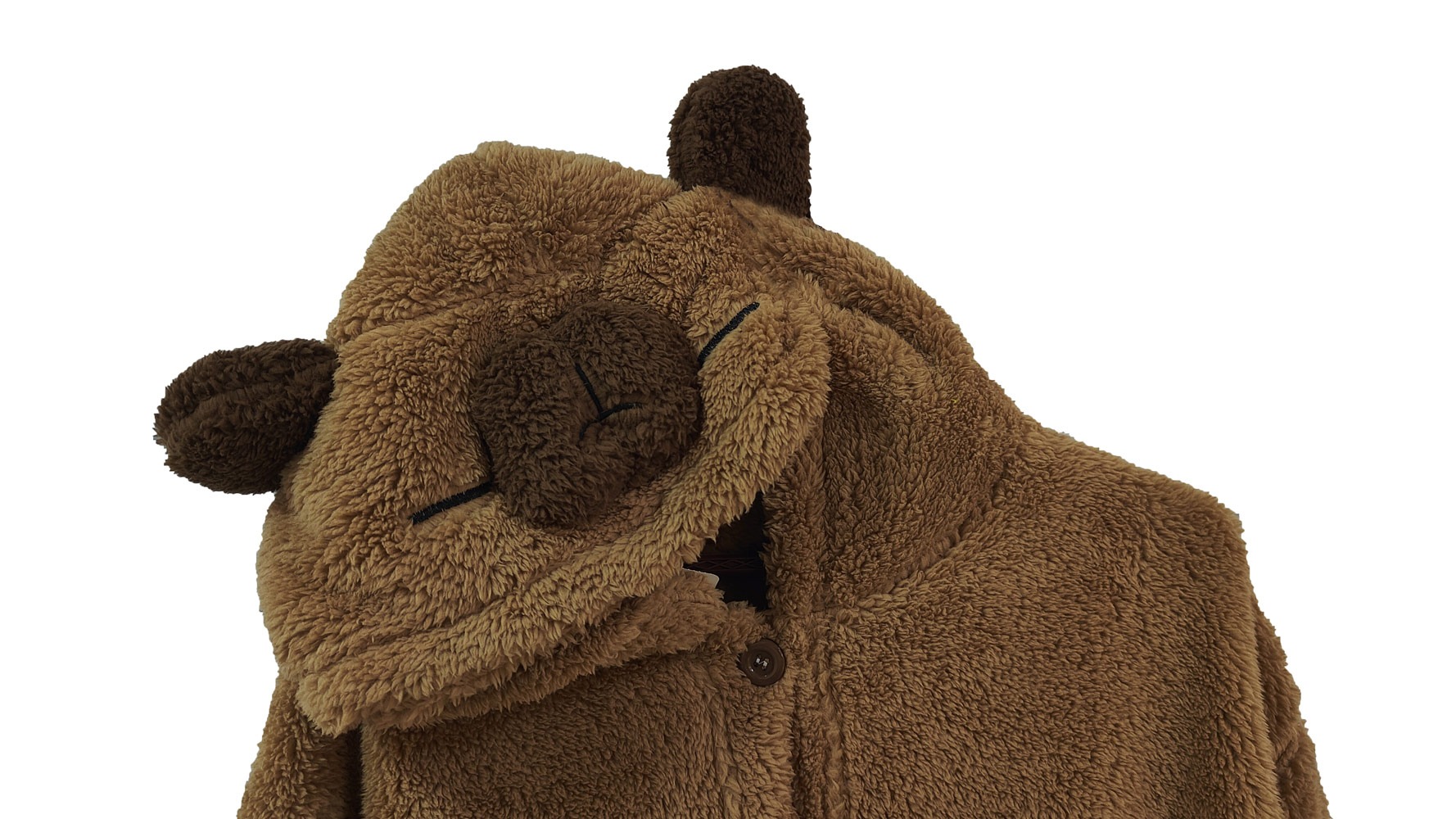 Коричневый Махровый Халат Кигуруми Капибара — Пушистый Костюм в виде Капибары для детей и взрослых.