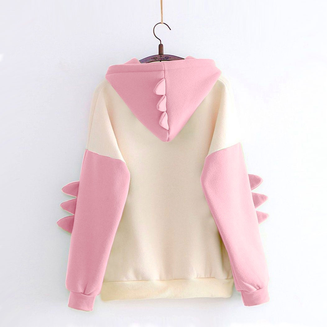Классное бежевое худи толстовка с розовыми рукавами и капюшоном в виде Дракона / Динозавтра / Годзиллы с шипами.