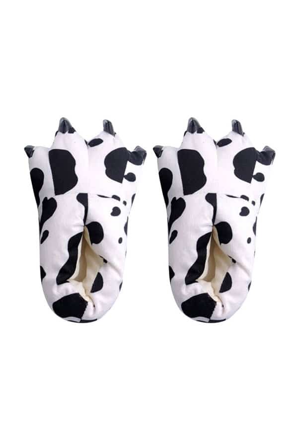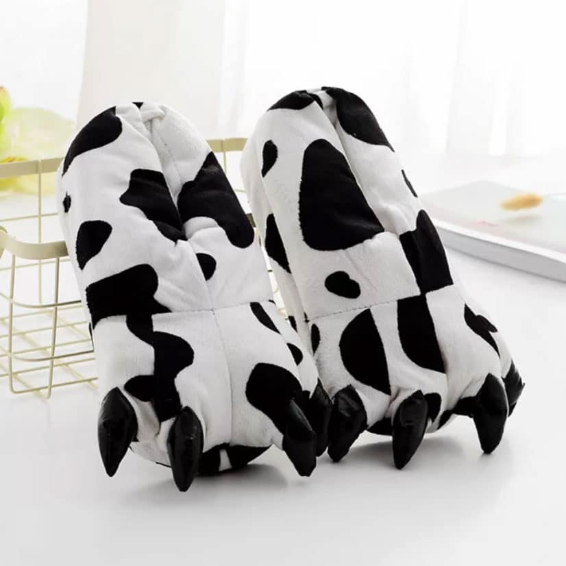 Эти мягкие домашние тапочки с когтями белого цвета с черными пятнами можно носить отдельно, или дополнить ими образ с пижамой кигуруми Бык / Корова.