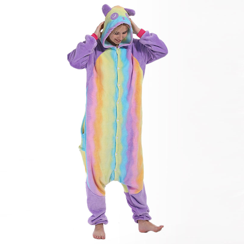 Эта необычная звериная пижама с капюшоном и очаровательным хвостиком переливается всеми цветами радуги и подойдет для маскарада, карнавала, веселой пижамной вечеринки, занятий спортом, или театральной постановки.