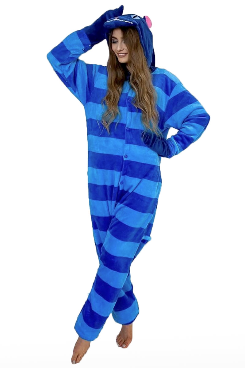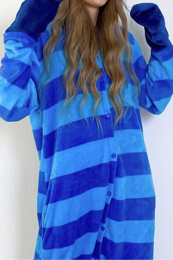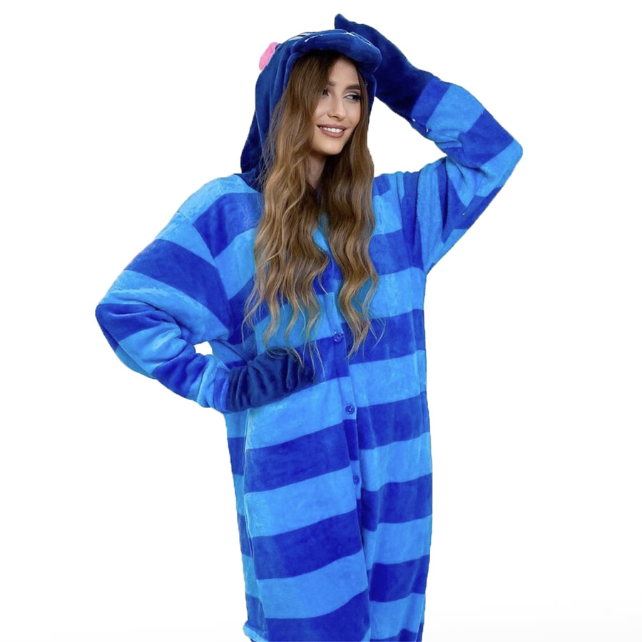Мягкий и пушистый приятный материал полосатой синего-голубой кигуруми «Чеширский Кот» подарит ощущение комфорта, уюта и хорошего настроения.